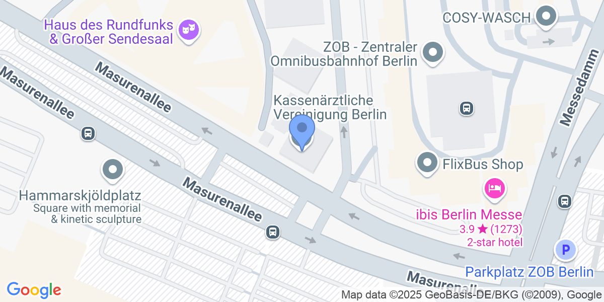 Die Kassenärztliche Vereinigung (KV) Berlin ist eine Körperschaft des öffentlichen Rechts und eine wichtige Schlüsselfunktion im Gesundheitswesen. Wir sind für die Sicherstellung der ambulanten medizinischen und psychotherapeutischen Versorgung der gesetzlich Versicherten in der Hauptstadt zuständig. Wir gewährleisten diese in Zusammenarbeit mit der Ärzteschaft auf einem hohen Qualitätsniveau – rund um die Uhr. Unser Hauptsitz befindet sich in einem modernen Bürogebäude in zentraler Lage mit sehr guter Verkehrsanbindung durch Bus und Bahn.